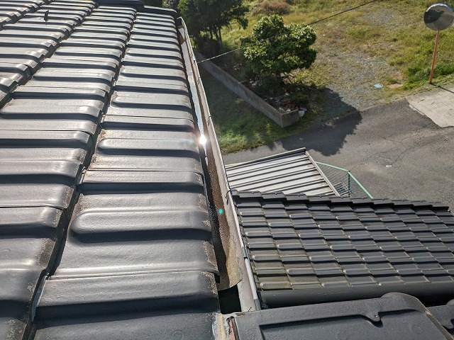 このままだと雨水が溢れる可能性があり、溜まった雨水の重さで雨樋が破損する可能性があります。