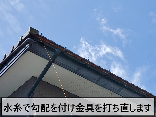 既存の雨樋を一度取り外して歪みを手である程度直し勾配を調整して取り付ける形でご提案させていただきました。