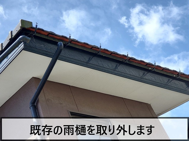 既存の雨樋はそのまま使用するので破損などしないように取り外します。